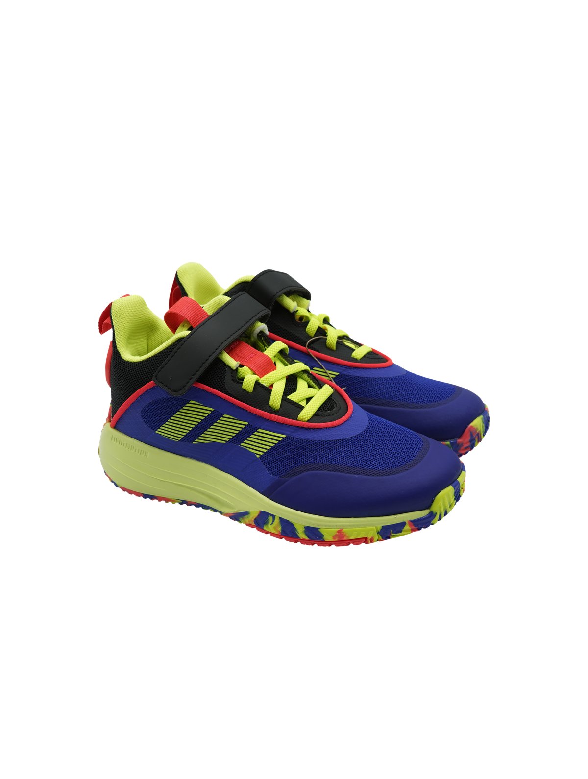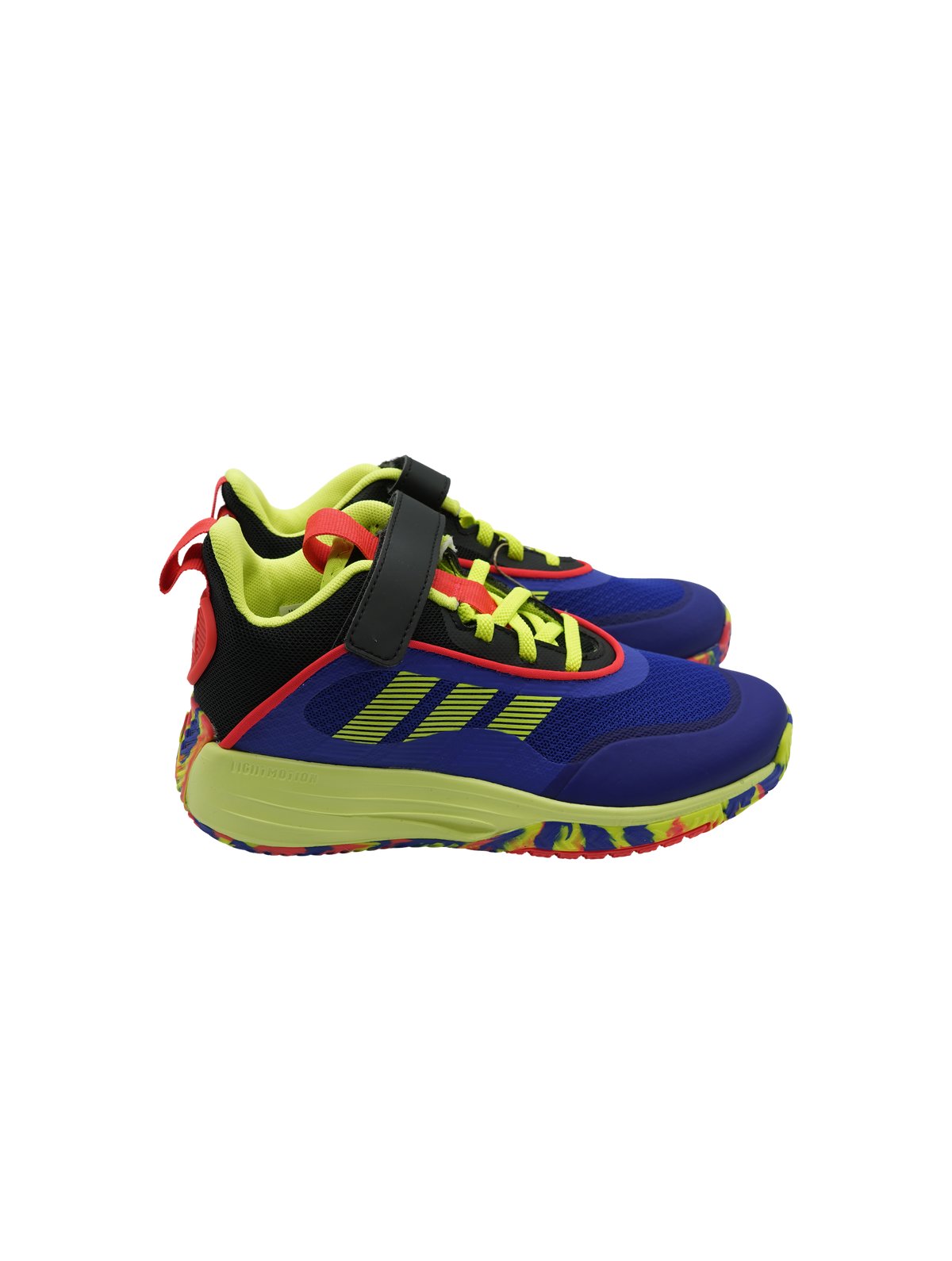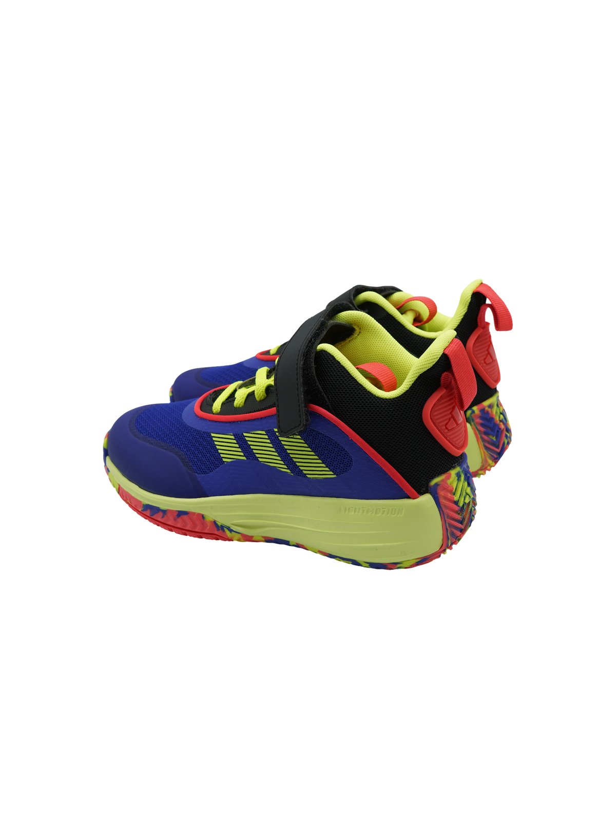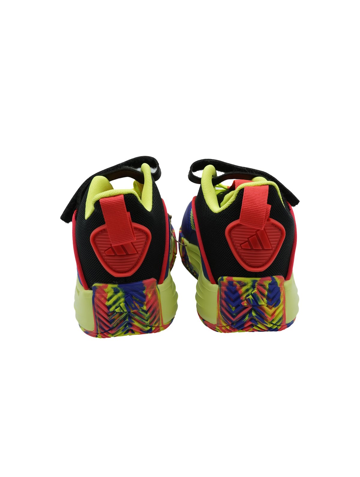 Scarpe da basket junior Adidas con design multicolore vibrante e chiusura a strappo per massimo comfort e supporto durante il gioco.