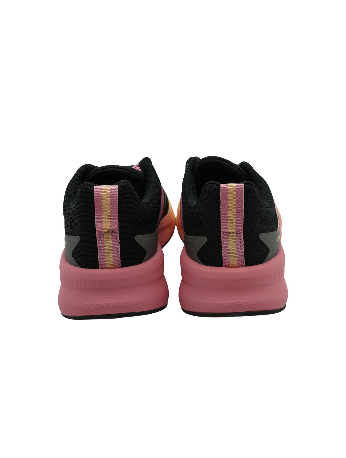 Il sistema di allacciatura con lacci rosa crea un contrasto cromatico vivace e femminile, perfettamente coordinato con i dettagli rosa presenti sul colletto e sulla linguetta. La suola presenta una particolare sfumatura che dal rosa si trasforma in giallo oro verso la punta, creando un effetto ombré unico e moderno.