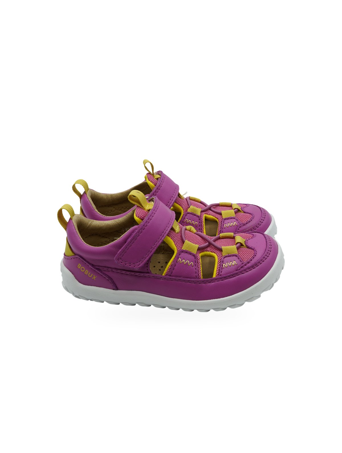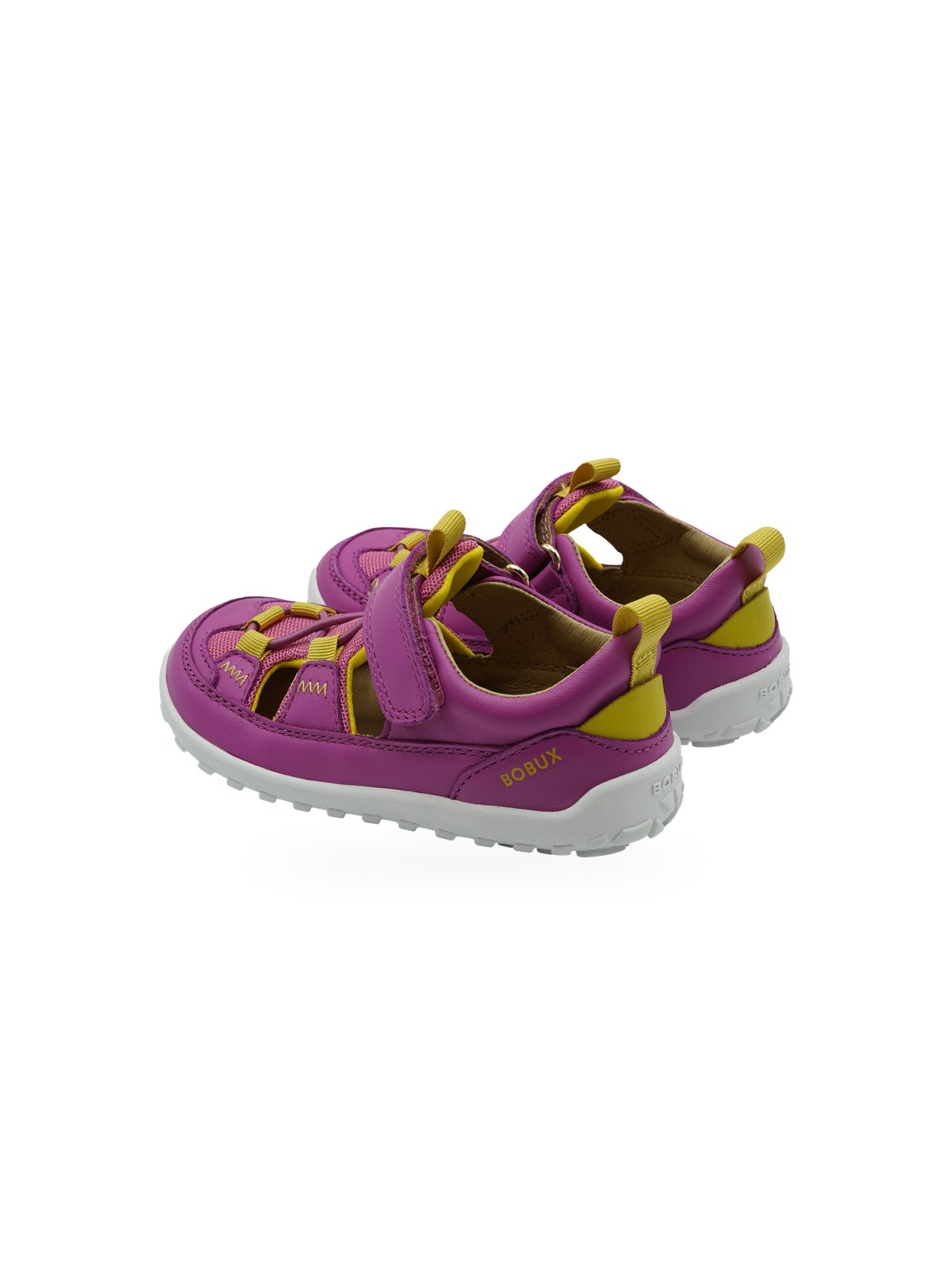 Le scarpe Bobux per bambina in rosa fucsia rappresentano la perfetta combinazione di stile, comfort e funzionalità per i piccoli esploratori. Caratterizzate da una vivace tonalità rosa fucsia con accenti gialli che creano un look dinamico e gioioso, perfetto per accompagnare le avventure quotidiane delle più piccole.