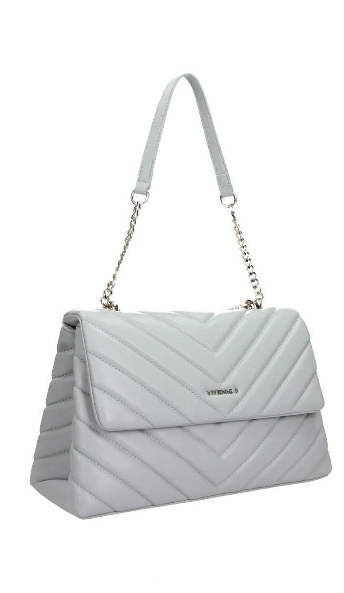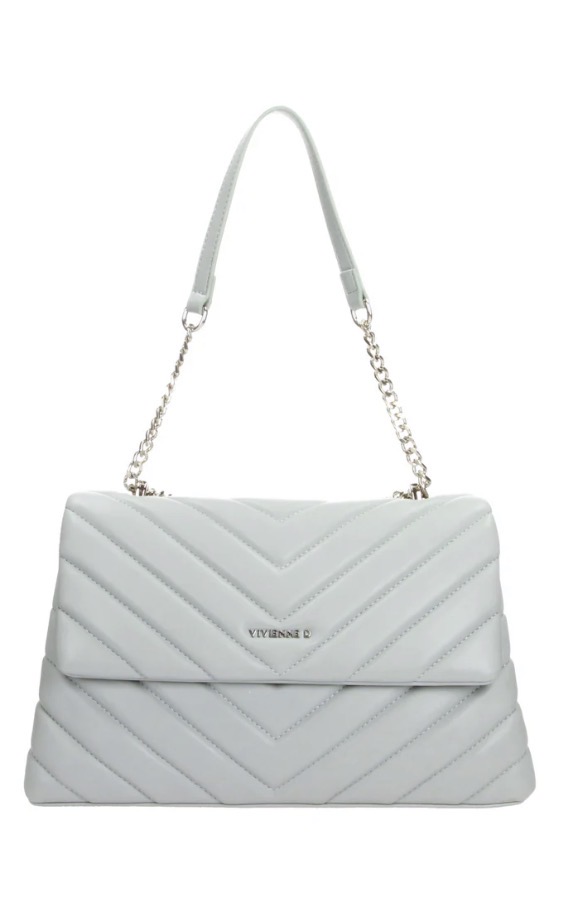 Borsa a spalla in ecopelle con due tasche interne di cui una con zip, logo vivienne D con finitura argentata.