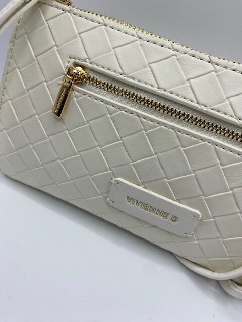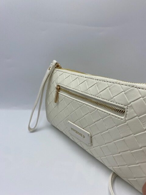 Busta tracolla twist Vivienne D colore burro in ecopelle con tasca frontale con cerniera