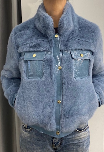 Ecopelliccia  modello slim con chiusura frontale con zip e bottoni automatici