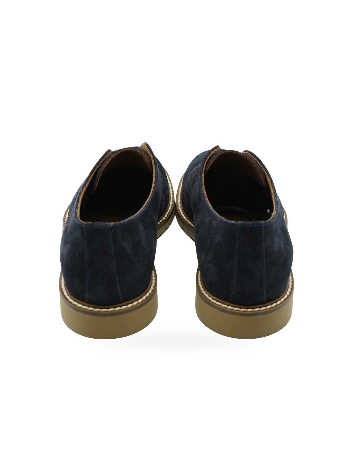 Le scarpe derby Frau rappresentano l’essenza dell’eleganza maschile italiana, realizzate in pregiata pelle scamosciata blu navy dalla texture vellutata e raffinata. Il design classico presenta la caratteristica allacciatura derby con quattro occhielli e lacci in tinta, mentre le cuciture precise testimoniano la qualità artigianale del brand.