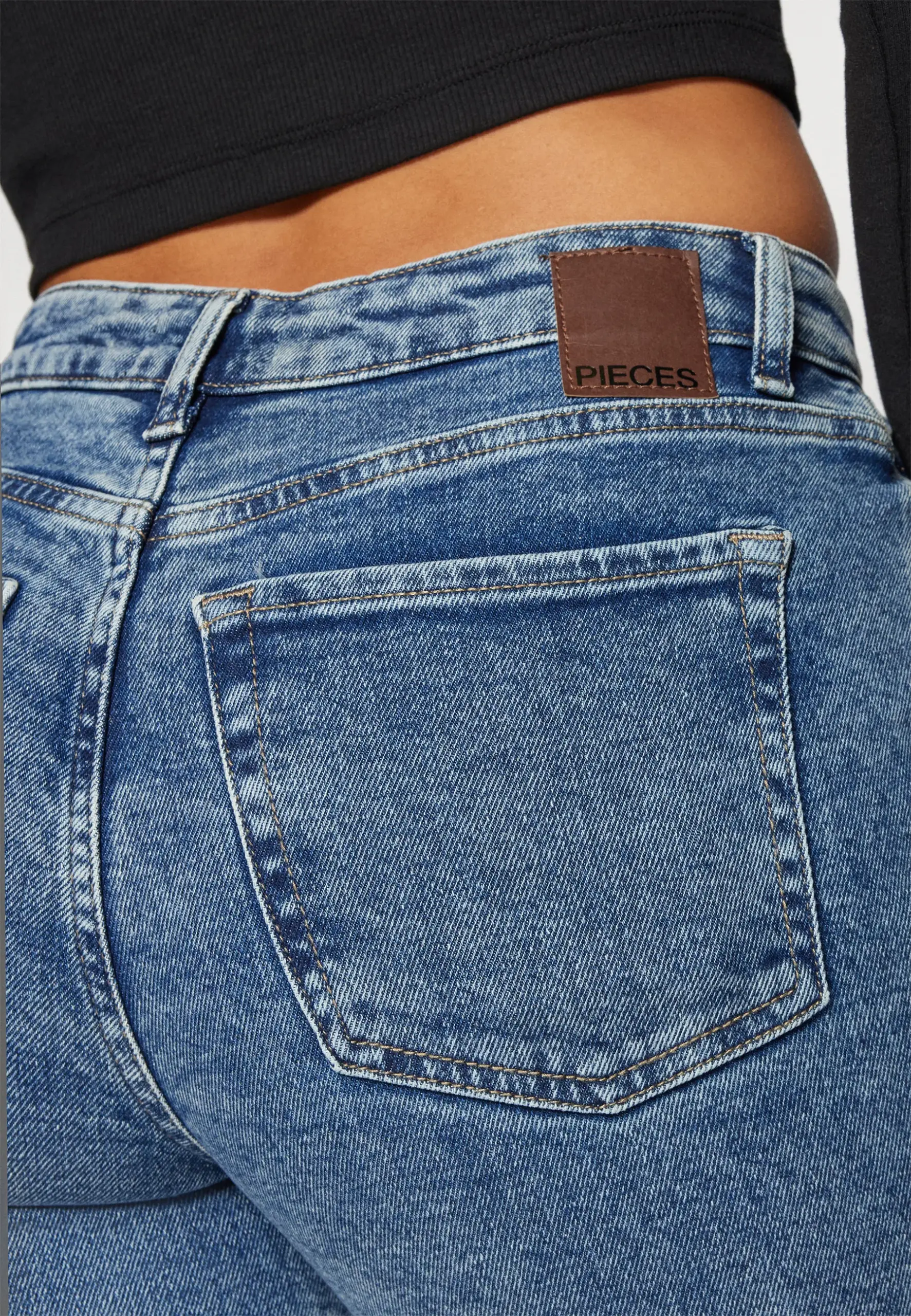 I Jeans Pieces modello Bella in denim light blu a vita alta ha una vestibilità slim, stile casual chic perfetto per ogni giorno.