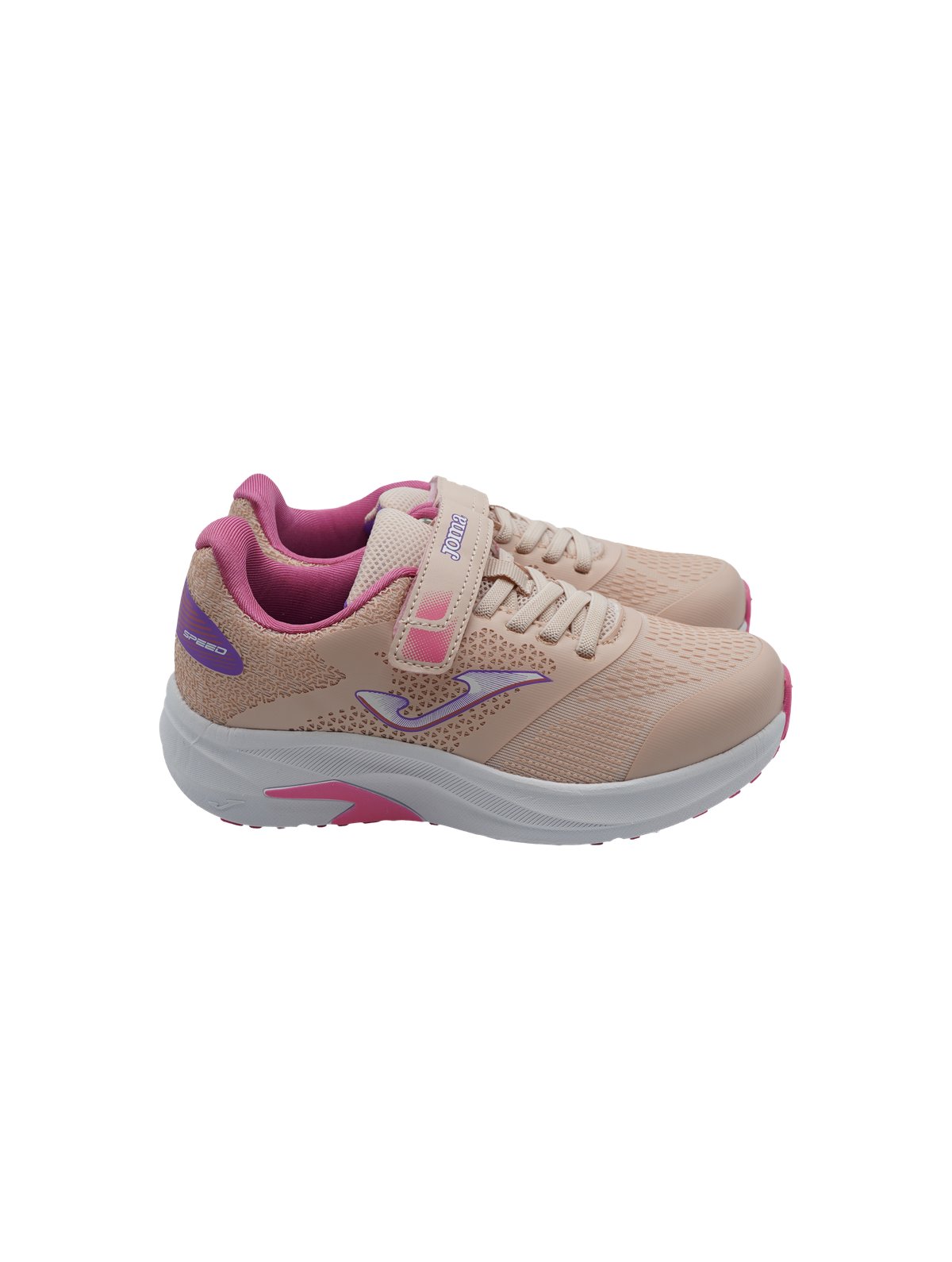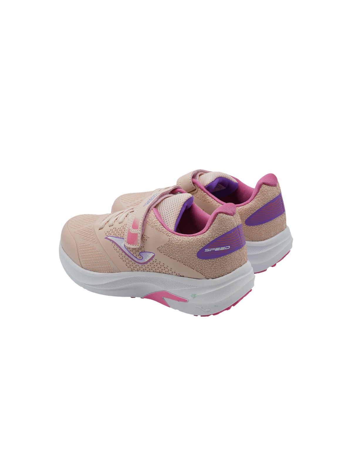 Sneakers running Joma SpeedJR in rosa e beige con chiusura velcro e lacci. Perfette per sport e tempo libero con suola ammortizzata.