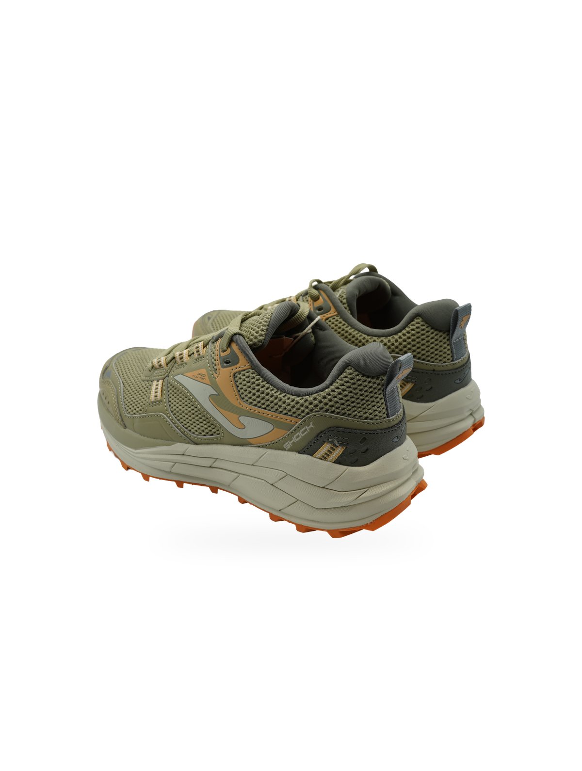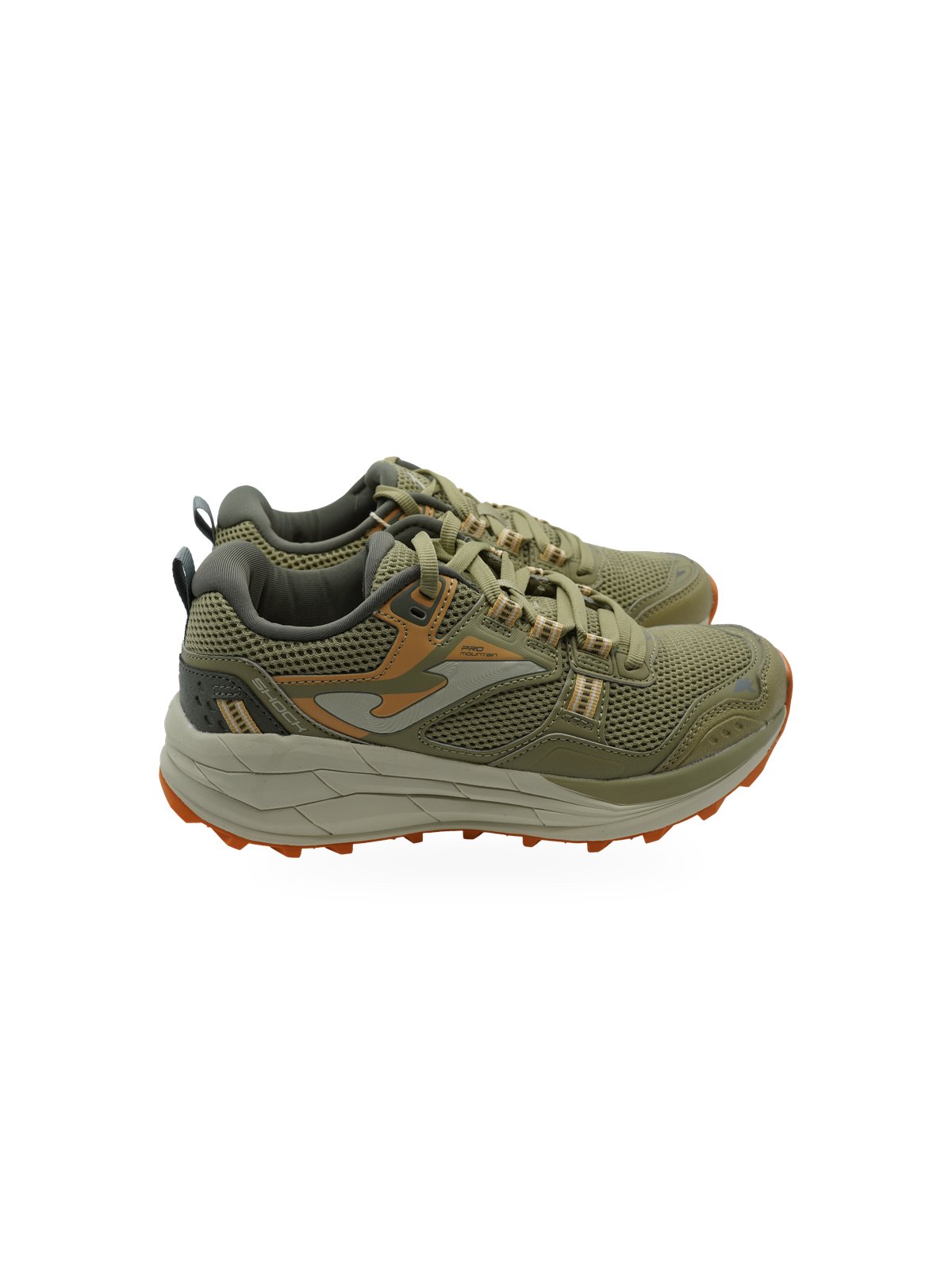 Sneakers da trekking Joma in tonalità verde militare con mesh traspirante e suola arancione per il massimo comfort outdoor.