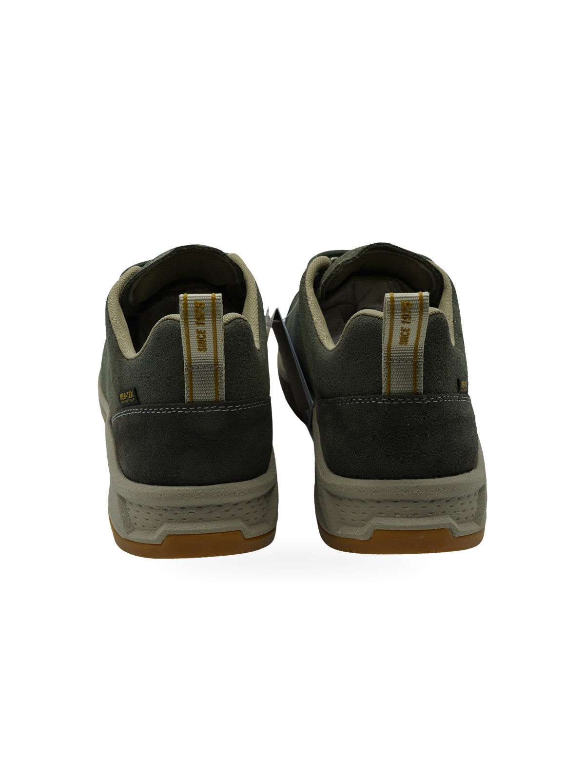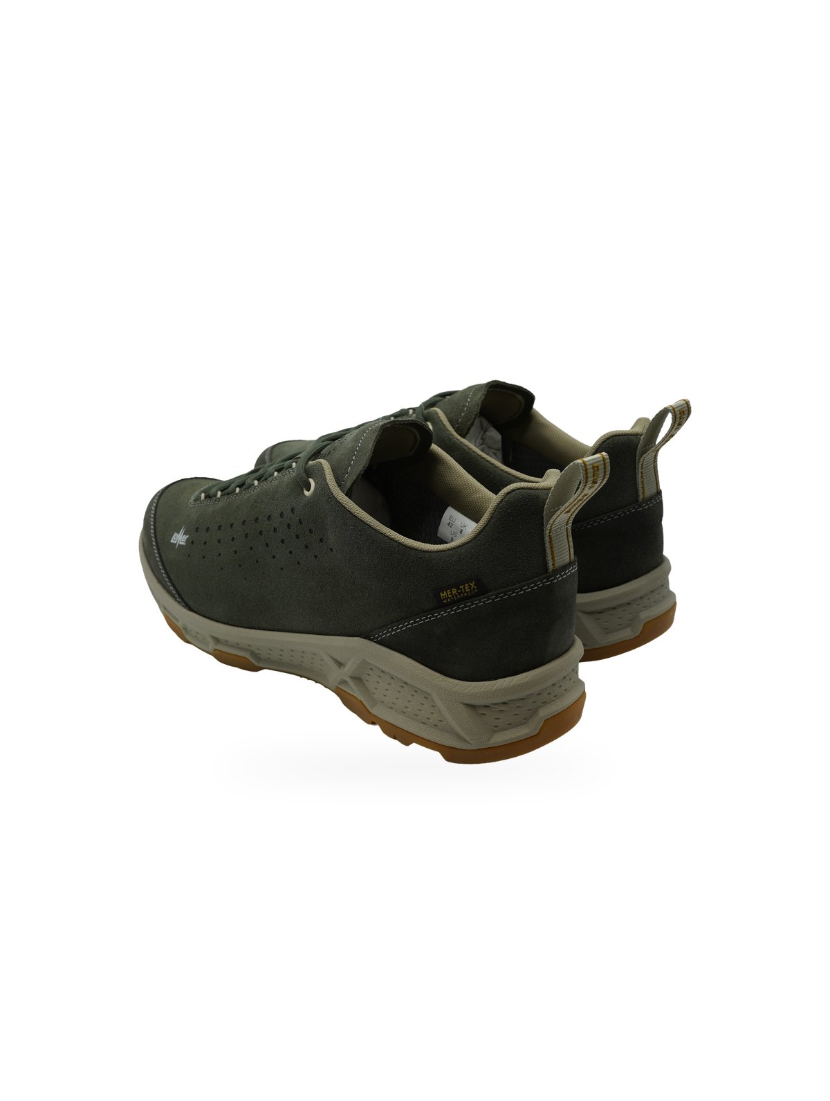 La tecnologia Mer-Tex Waterproof assicura protezione completa dall’acqua senza compromettere la traspirabilità del piede. Le cuciture a contrasto in tonalità più chiara definiscono la silhouette, mentre i lacci coordinati in verde permettono una calzata personalizzabile. Il tallone rinforzato e la linguetta imbottita offrono supporto e comfort superiori.