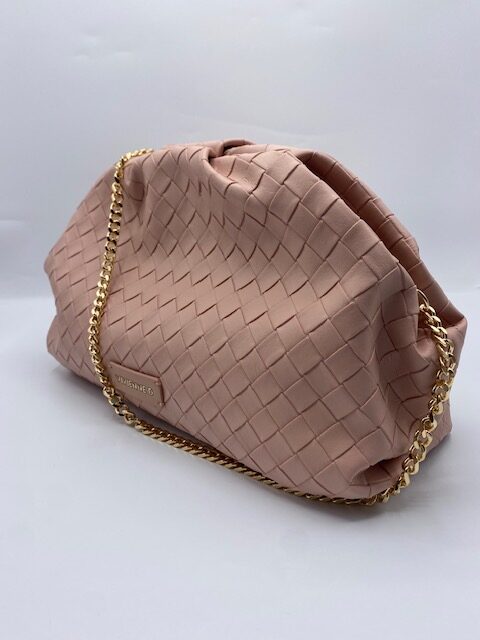 Maxi pochette twist Vivienne D color rosa in ecopelle con due tasche interne di cui una con zip