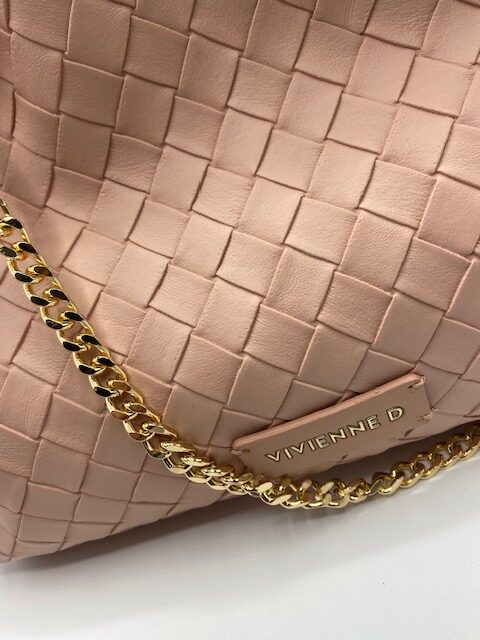 Maxi pochette twist Vivienne D color rosa in ecopelle con due tasche interne di cui una con zip e logo Vivienne D con finitura dorata