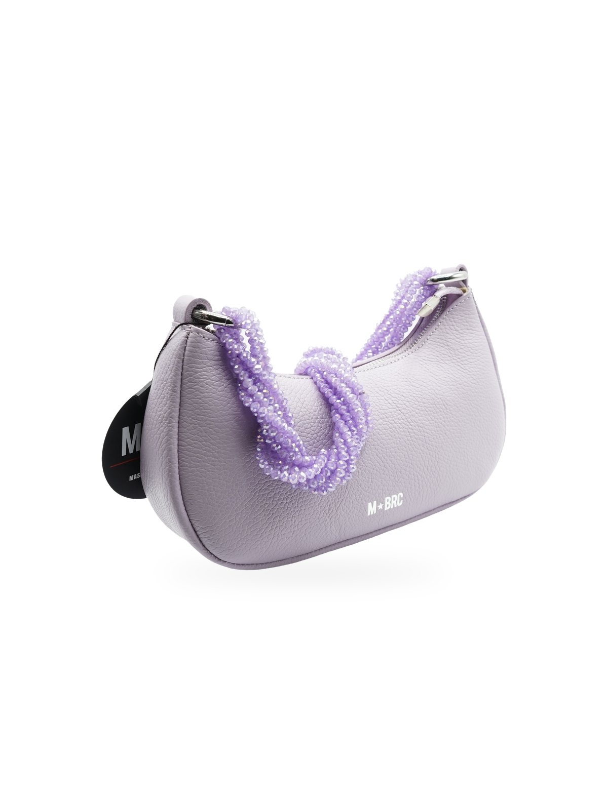 Borsa a spalla MBRC Gemma in pelle glicine con elegante tracolla di perline viola luminose. Design raffinato per occasioni speciali.
