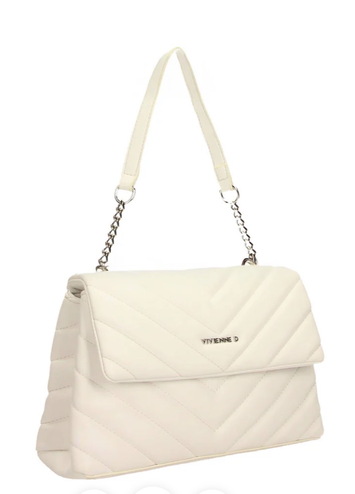 Minibag in ecopelle con due tasche interne di cui una con zip, logo Vivienne d in finitura argentata