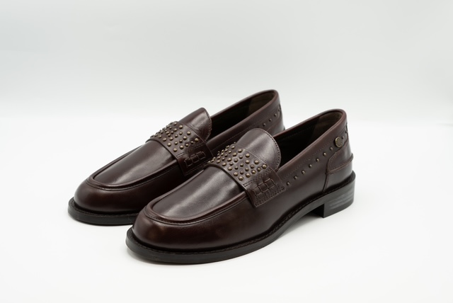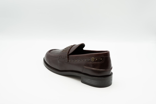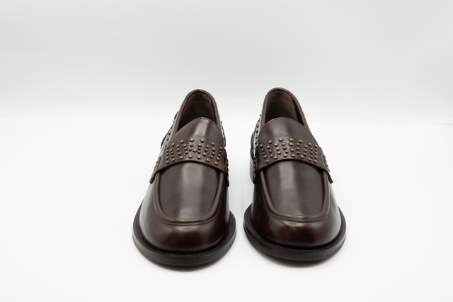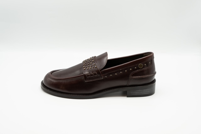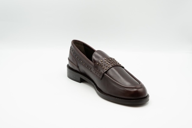 Il mocassino Janet & Janet nel colore bordeaux con inserti di borchie è la scelta perfetta per chi ama unire eleganza e personalità in un solo accessorio.