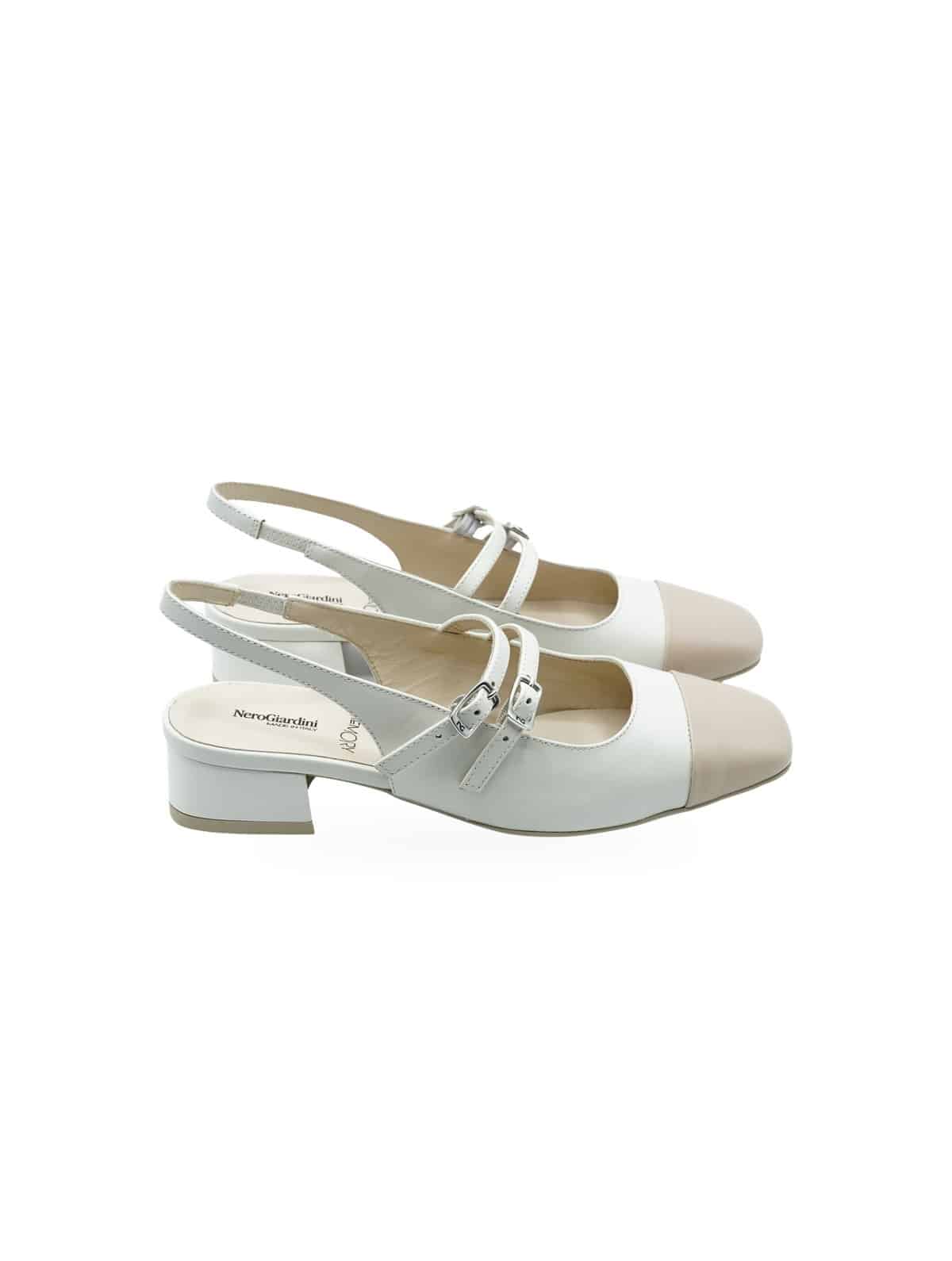 Décolleté slingback Nero Giardini in pelle cipria con dettagli beige e doppia fibbia regolabile. Eleganza raffinata per cerimonie.