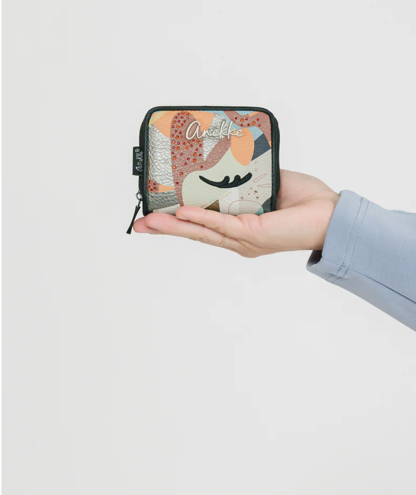 Portafoglio donna Anekke dal design bohemian chic. Stampe esclusive e dettagli ricercati per un accessorio unico che riflette personalità e stile. Funzionalità e bellezza in perfetto equilibrio.