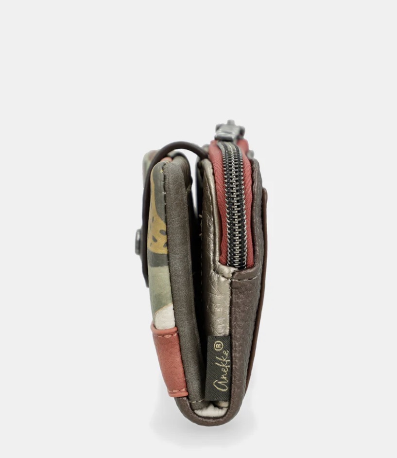 Portafoglio donna Anekke con stampe bohémien esclusive e dettagli artistici. Design contemporaneo che unisce funzionalità e stile unico. L’accessorio perfetto per la donna moderna.