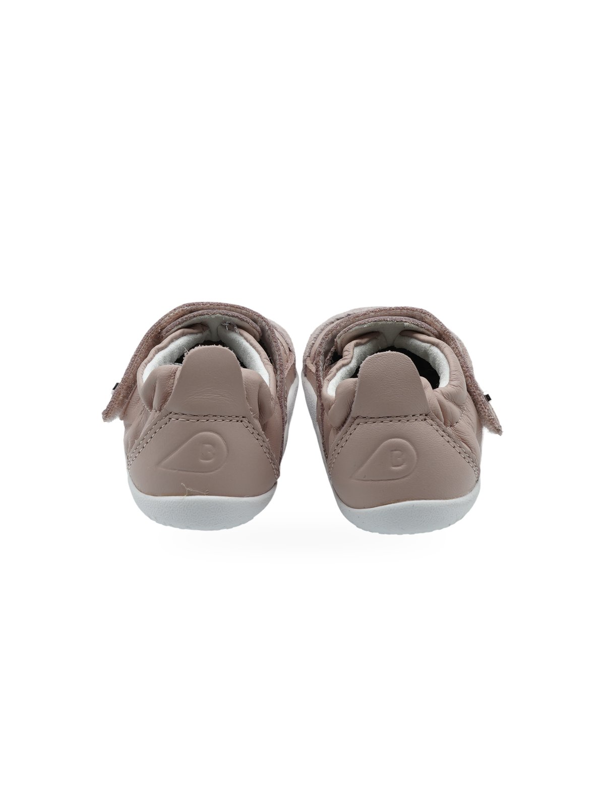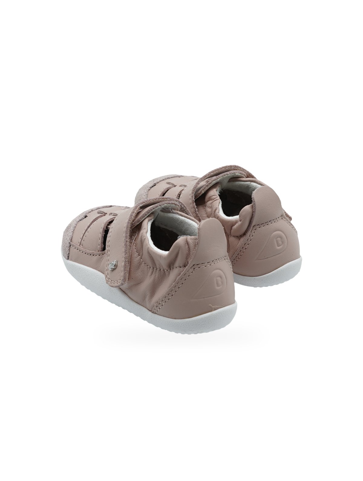 Sandali Bobux rosa bambina primi passi in morbida pelle rosa con chiusura a strappo. Design ergonomico per lo sviluppo naturale del piede.