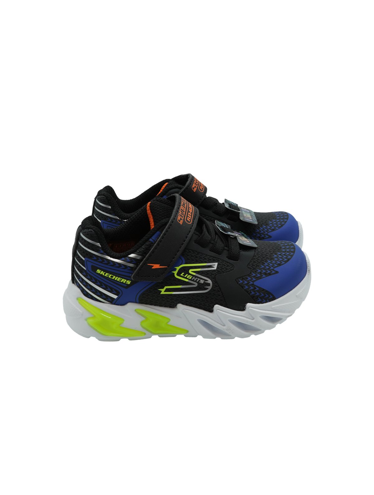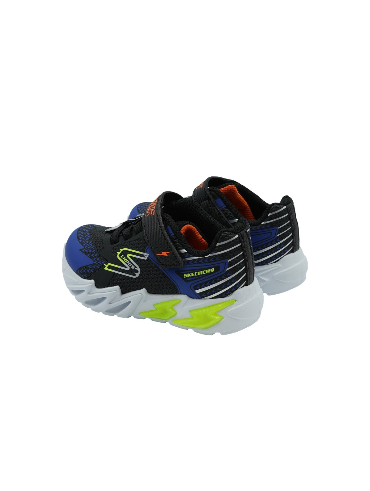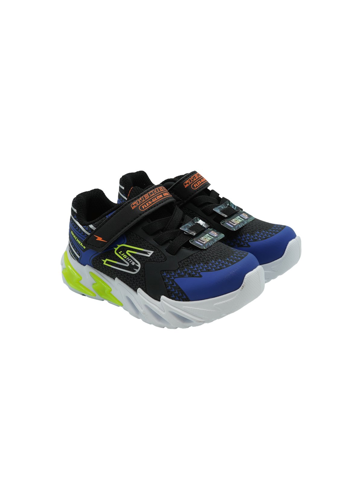 Sneakers luminose Skechers Flex Glow Bolt per bambino in colorazione black blue. Suola flessibile e luci LED per un look dinamico e divertente.