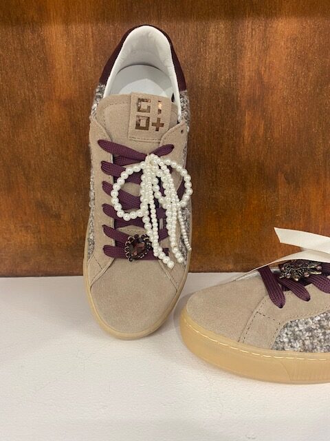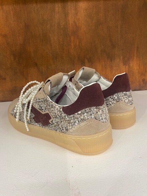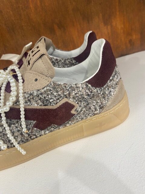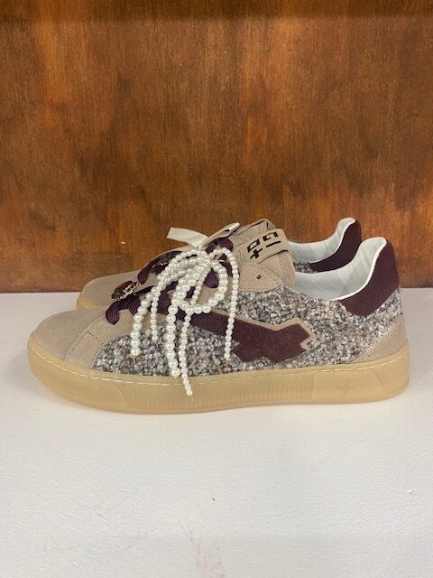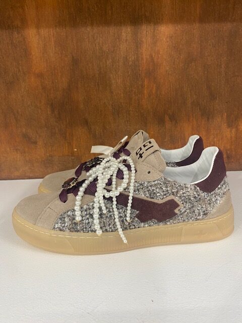 Nel colore tortora con inserti bordeaux questo modello si distingue per la sua capacità di adattarsi facilmente ad ogni outfit dal casual urbano ai look più curati.