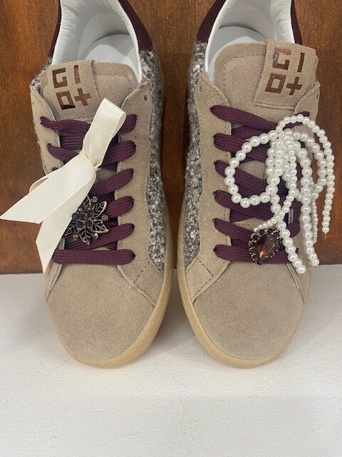 La sneakers Giopiu Blu36A è la scelta perfetta per chi desidera una calzatura versatile, raffinata, realizzata in vera pelle e impreziosita da accessori gioiello e da inserti in morbida lana, questa sneakers da donna coniuga artigianalità italiana,comfort e stile contemporaneo.