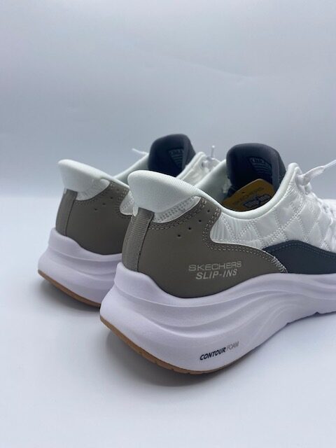 Sneakers uomo Skechers in bianco. Tecnologia Skechers per comfort superiore e stile versatile. Perfette per sport e tempo libero con design contemporaneo.