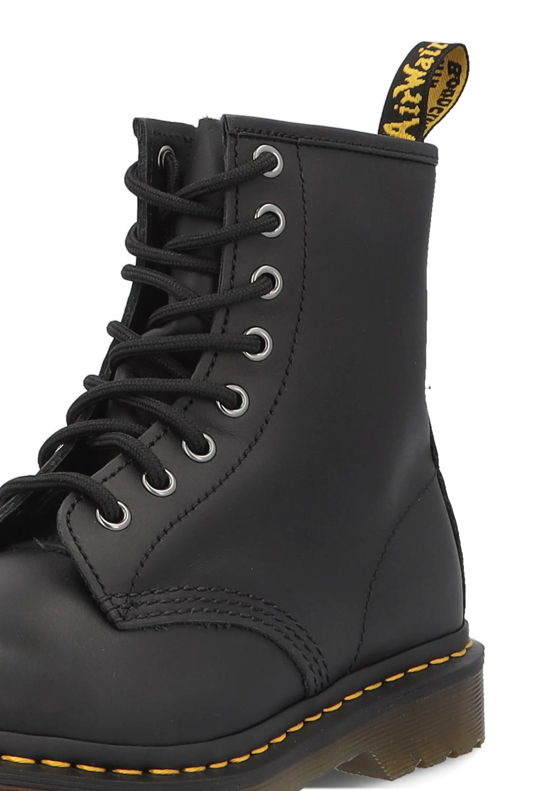 La leggendaria suola AirWair con cuscinetto d’aria garantisce comfort superiore e ammortizzazione ad ogni passo, mentre la costruzione robusta assicura una durata che sfida il tempo. Le cuciture gialle iconiche e gli occhielli distintivi completano un design immediatamente riconoscibile in tutto il mondo.