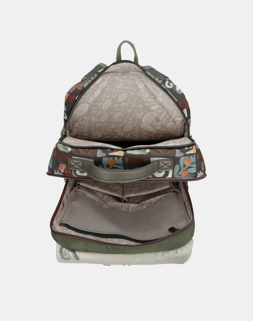 Zaino da viaggio donna Anekke con stampe esclusive e dettagli boho-chic. Materiali resistenti, organizzazione interna funzionale e stile inconfondibile del brand spagnolo.